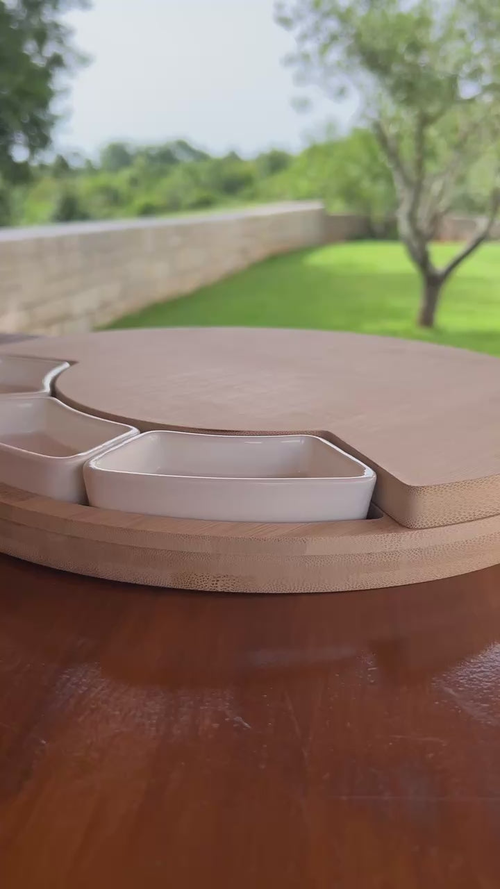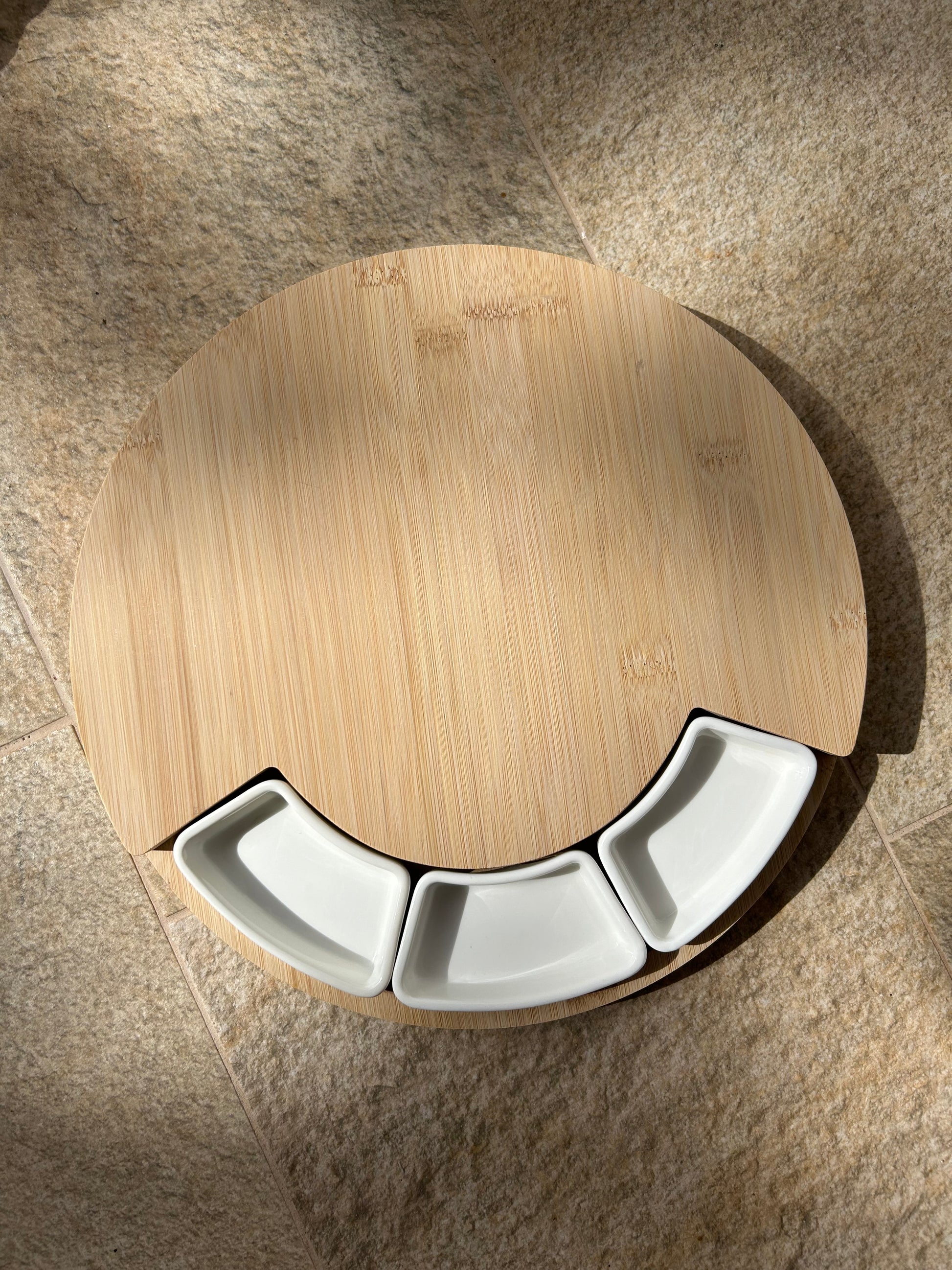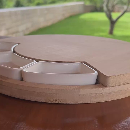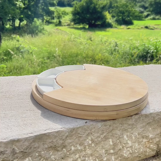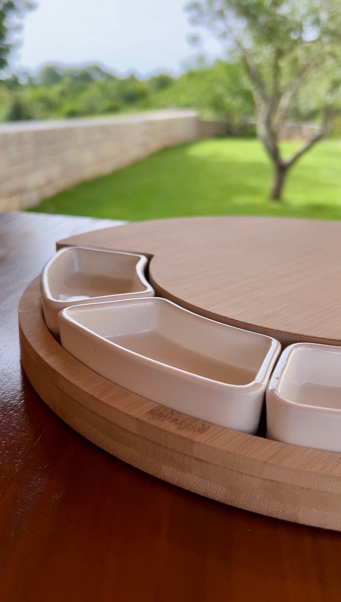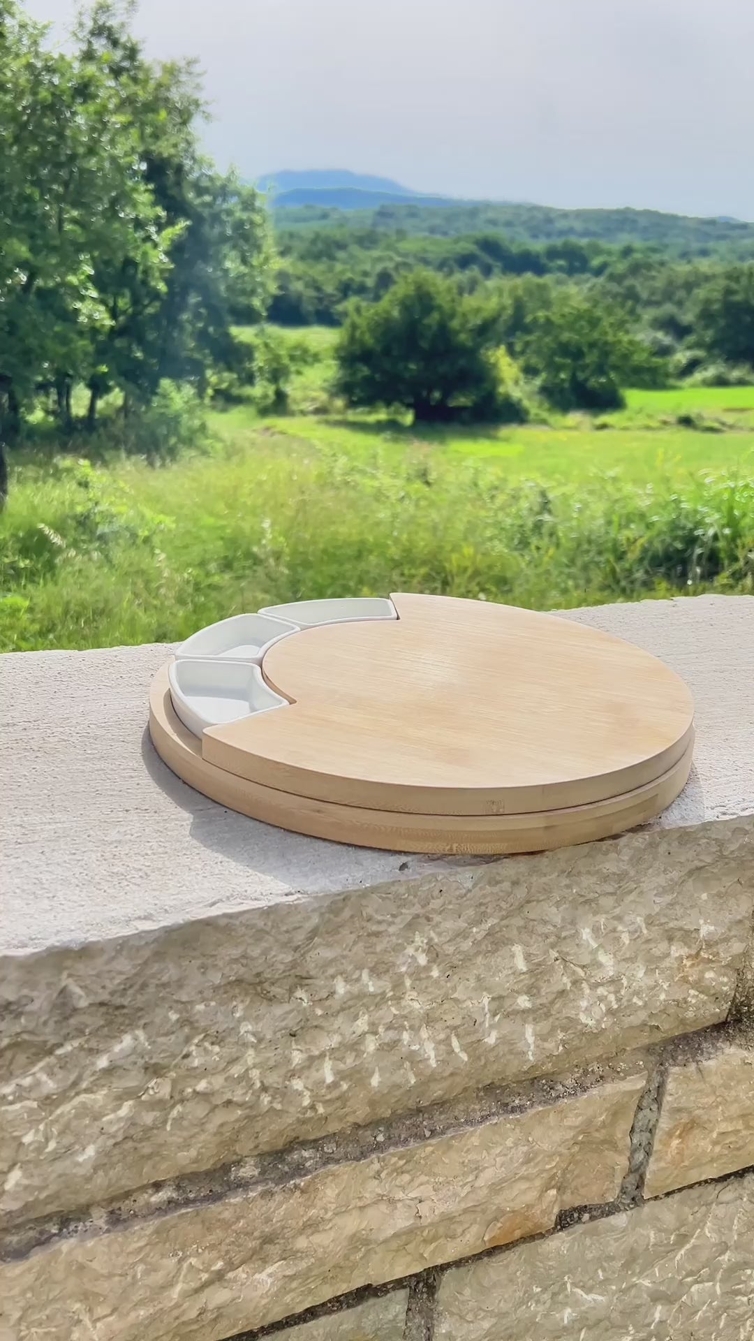 Savršena kombinacija prirodnog drveta i keramike – ova daska za delikatese nije samo praktična, već i vizuelno impresivna!