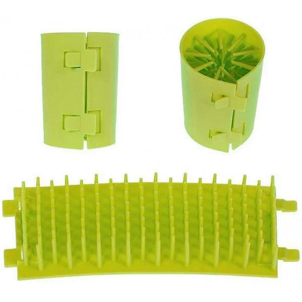 Kad su četkice unutra, posuda je čistač šapa. Kad ih okreneš prema van, dobivaš četku za njegu i kupanje – jedno rješenje, dvostruka upotreba.